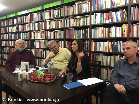 Η Δέσποινα Νέστωρα, υπεύθυνη του βιβλιοπωλείου καλωσόρισε το αναγνωστικό κοινό καθώς και τον συγγραφέα, φιλόλογο-ποιητή Αντώνη Κάλφα, τον ιστορικό Τέχνης και σχολικό σύμβουλο Νίκο Γραίκο και τον ηθοποιό-σκηνοθέτη Χάρη Αμανατίδη που διάβασε αποσπάσματα του βιβλίου…